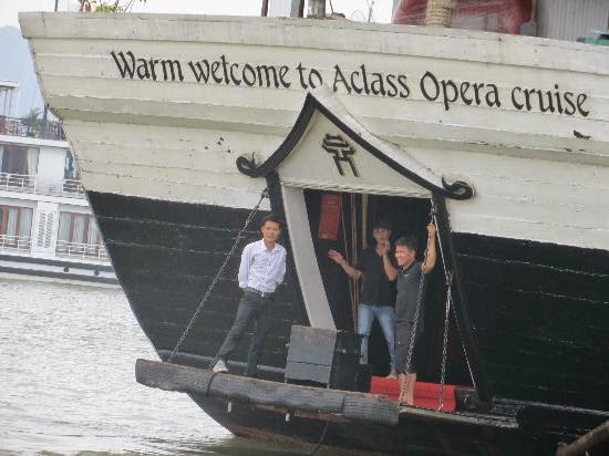 Escolhemos a A-Class Cruises e depois de discutir as condições e sobre tudo o preço ficou acordado que por 85 euros (que incluía transporte do hotel em Hanoi até ao porto de Halong,cabine categoria em deluxe,refeições durante os dois dias do cruzeiro,visita a algumas grutas e algumas atividades tais como kayak e snorkling).