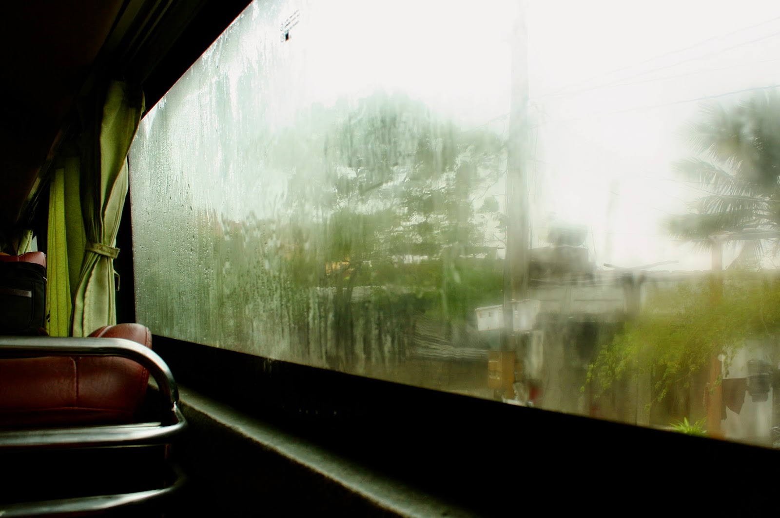 Todas as expectativas que tínhamos criado diluíam-se aos poucos com a chuva que teimava em cair e que nos acompanhava mesmo sem ser convidada e como se não bastasse havia ainda o denso nevoeiro que não nos deixava ver muito para lá das janelas cobertas de gotas daquele pequeno autocarro.