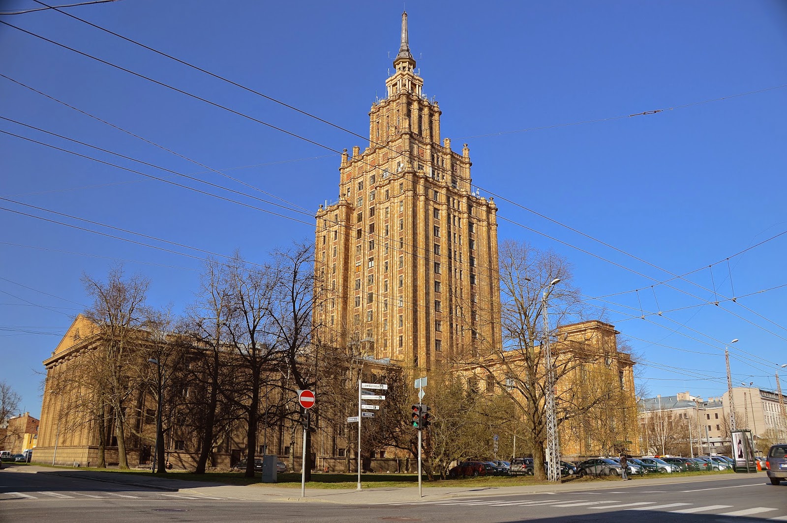Estamos perante um dos mais impressionantes edifícios desta zona da cidade.A sua construção iniciou-se logo depois da segunda guerra mundial e a sua arquitectura é claramente de estilo soviético.