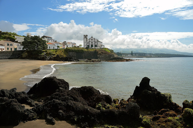 Ainda nesta pequena vila destacamos a praia de areia negra onde numa falésia se ergue uma bonita e típica igreja.
