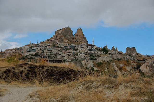A região da Capadócia já é ocupada à milhares de anos e os diversos povos que por aqui foram passando cedo perceberam que o tipo de rocha existente era suficientemente macio para que aí pudessem escavar os seus abrigos. Pouco a pouco e com o aumento da população, foram nascendo pequenas povoações. Logo nos primeiros metros do trilho deparamos-nos com algumas antigas habitações que segundo nos pareceu foram abandonadas pelos seus ocupantes, talvez por já não oferecerem condições de segurança. Mesmo em mau estado deu para ter uma ideia de como seria o aspecto do espaço na altura em as pessoas ali viviam.