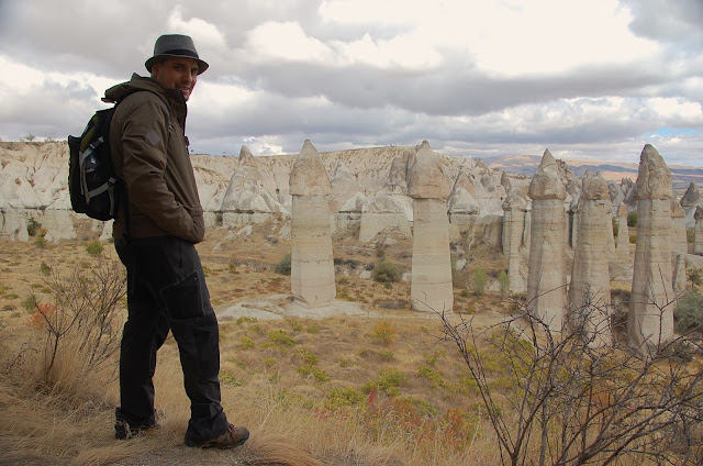 O trilho leva-os até um ponto mais elevado e lá em baixo, aos nossos pés, temos a Capadócia no seu estado mais puro. Tudo o que vemos é o resultado do trabalho minucioso da natureza. Ao longo de milhares de anos, vários vulcões da região entraram em erupção e as cinzas e lava expelidas, acabaram por ser sucessivamente acumuladas em diversas camadas. A camada inferior, mais macia, desgasta-se facilmente com a ação da chuva e do vento, ao passo que a crosta superior é mais dura e por consequência mais resistente. A conjugação destes factores deu origem à estas formações estranhas.