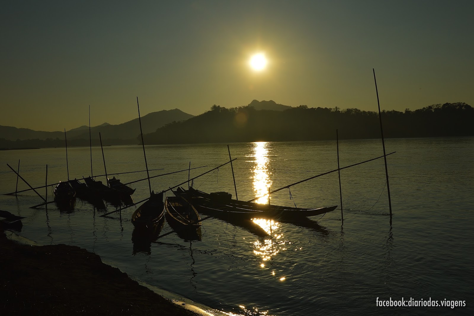 Ao longo das margens do rio Mekong existem muitos sítios onde poderão sentar-se tranquilamente e em silêncio,assistir a um dos mais bonitos espetáculos da natureza.