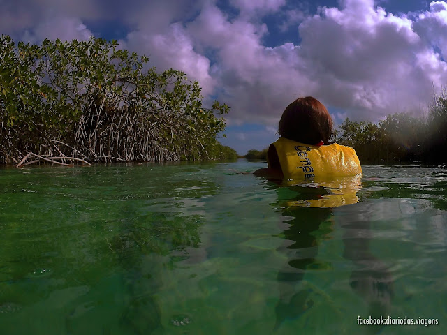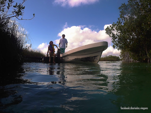 Naqueles canais delimitados por mangais e criados pelo povo Maia, vamos avançando lentamente e ao sabor da corrente durante quase uma hora.